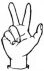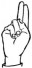 На ћирилици написано ВУКАН КОРИЦА састоји се из 11 слова [?]. Исписано ћириличном једноручном азбуком за глувонеме: